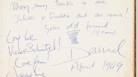 Their visit in April 1969 is recorded in the Wenkarts’ guest book. And from du Pré’s effusive message in the book — ‘Long live Wiener Schnitzel! Love from Jacqueline’ — we know what was on the menu.
