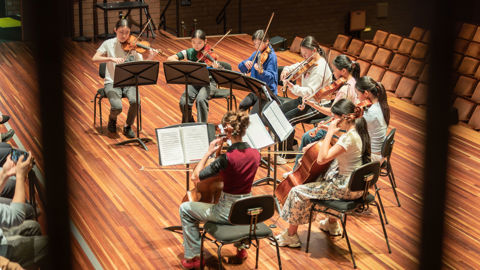 On weekend of the 12 and 13 April 2025, 25 Workshop string players perform Bach's Brandenburg Concerto No.3 first movement.